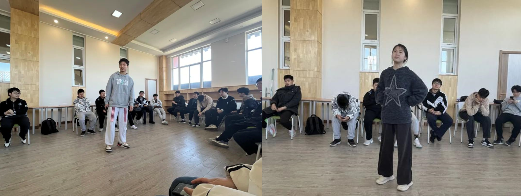 本次活动由人工智能2301心理委员周修同与学生会成员何一彤共同主持,他先讲述本次活动的目的以及流程,之后介绍本次活动中互动游戏的规则,并带领大家参与活动,享受活动。