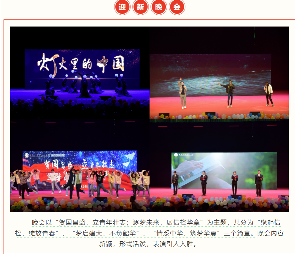 在紫阁大礼堂举办2023年“贺国昌盛,立青年壮志;逐梦未来,展信控华章”迎新晚会暨颁奖典礼。学院班子成员,系、科室负责人,各专业教师代表,新生班主任,辅导员以及2023级新同学共赴精彩盛宴。