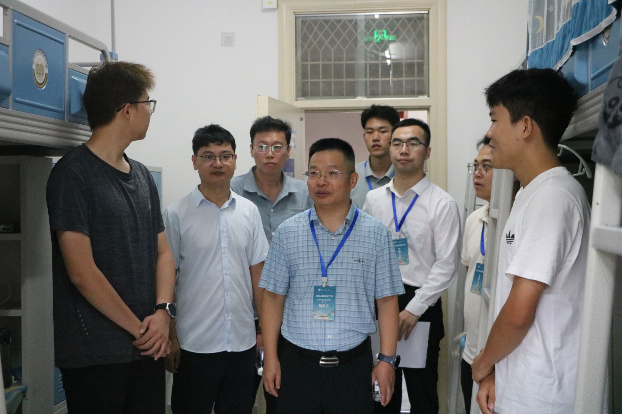 迎新工作的布置情况与学生报到情况,亲切慰问参加迎新工作的师生及志愿者。