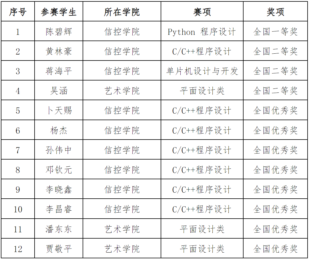 全国总决赛获奖名单