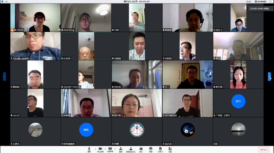 毕业十年的8位硕士、博士分别用图片、视频、PPT介绍了本人离校以来的奋斗历程、取得的成绩和工作体会,其中不乏有成绩皎皎者。其它年级毕业的硕、博士也就所关心的话题积极发言分享,进行热烈讨论。持续4个多小时的线上会议,共计有18人发言。大家一致感谢母校的培养,表达了饮水思源的感恩之情。