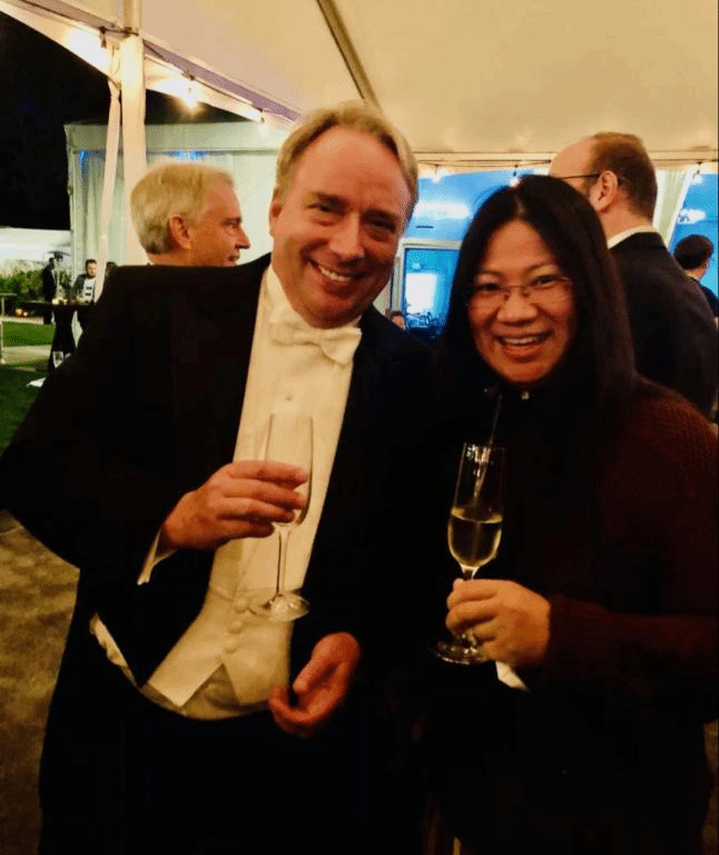 图3邹婷与Linux创始人Linus Benedict Torvalds合影