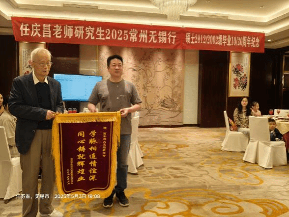 5月3日,任庆昌老师及研究生一行抵达无锡,与无锡校友会校友们举办了联谊活动。活动由无锡校友会秘书长柳博及研究生代表孙晴共同主持。活动伊始,校友们合影留念,随后进入联谊互动环节。任庆昌老师一行向无锡校友会赠送了锈有文字“同心铸就辉煌业,学脉相连情谊深”的锦旗,希望校友们加强工作交流及与母校之间的联络。无锡校友会副会长王挥忠代表校友会向任庆昌老师及研究生一行赠送了纪念品。随后与会校友们介绍了各自的个人情况及工作领域。任庆昌教授与校友们亲切交流,回顾了几十年来执教生涯中培养了百名硕博人才的历程,并对校友们取得的的成就表示祝贺。校友们围绕行业发展、学术与技术合作等议题展开讨论,现场气氛热烈。
