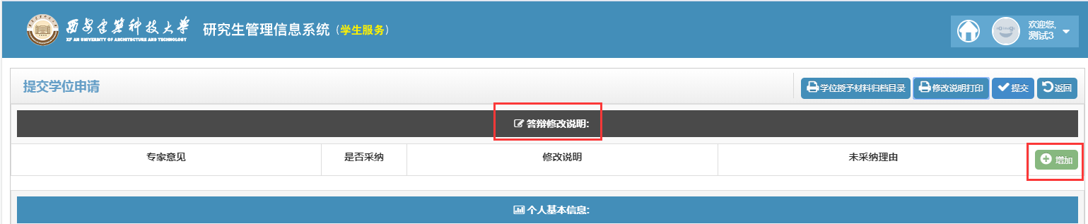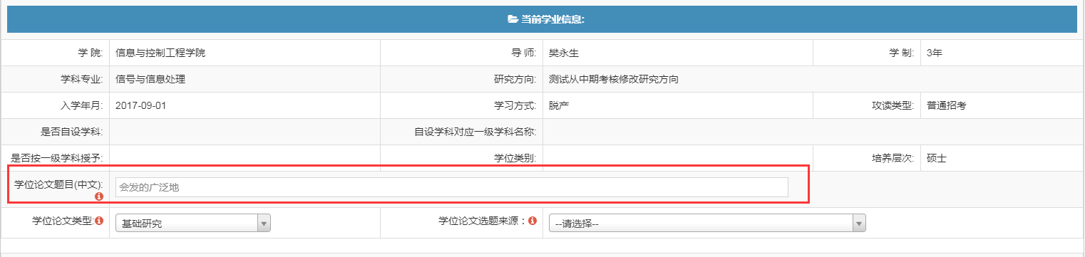 四、申请答辩,填写相关信息