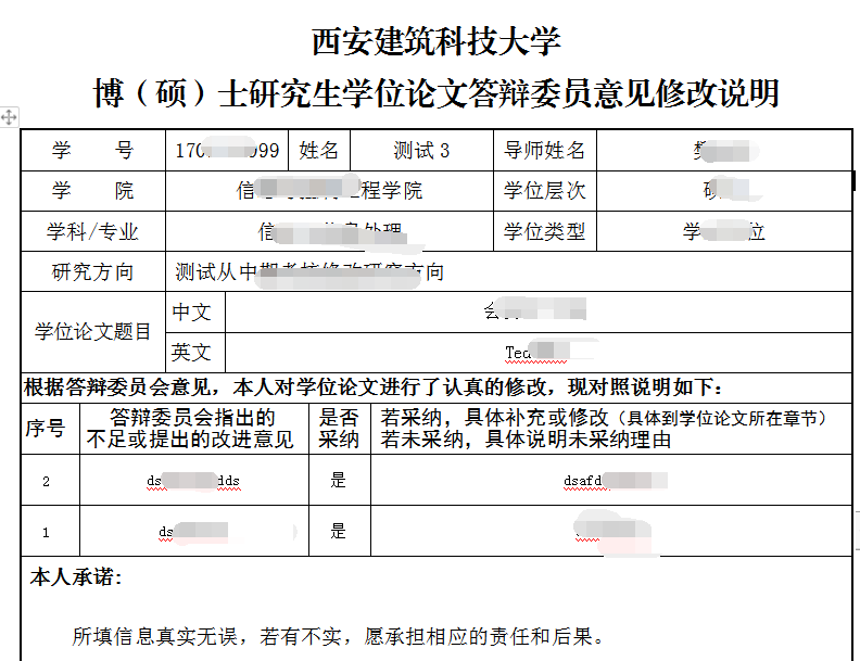 4.生成答辩修改说明,请导师线下审核。