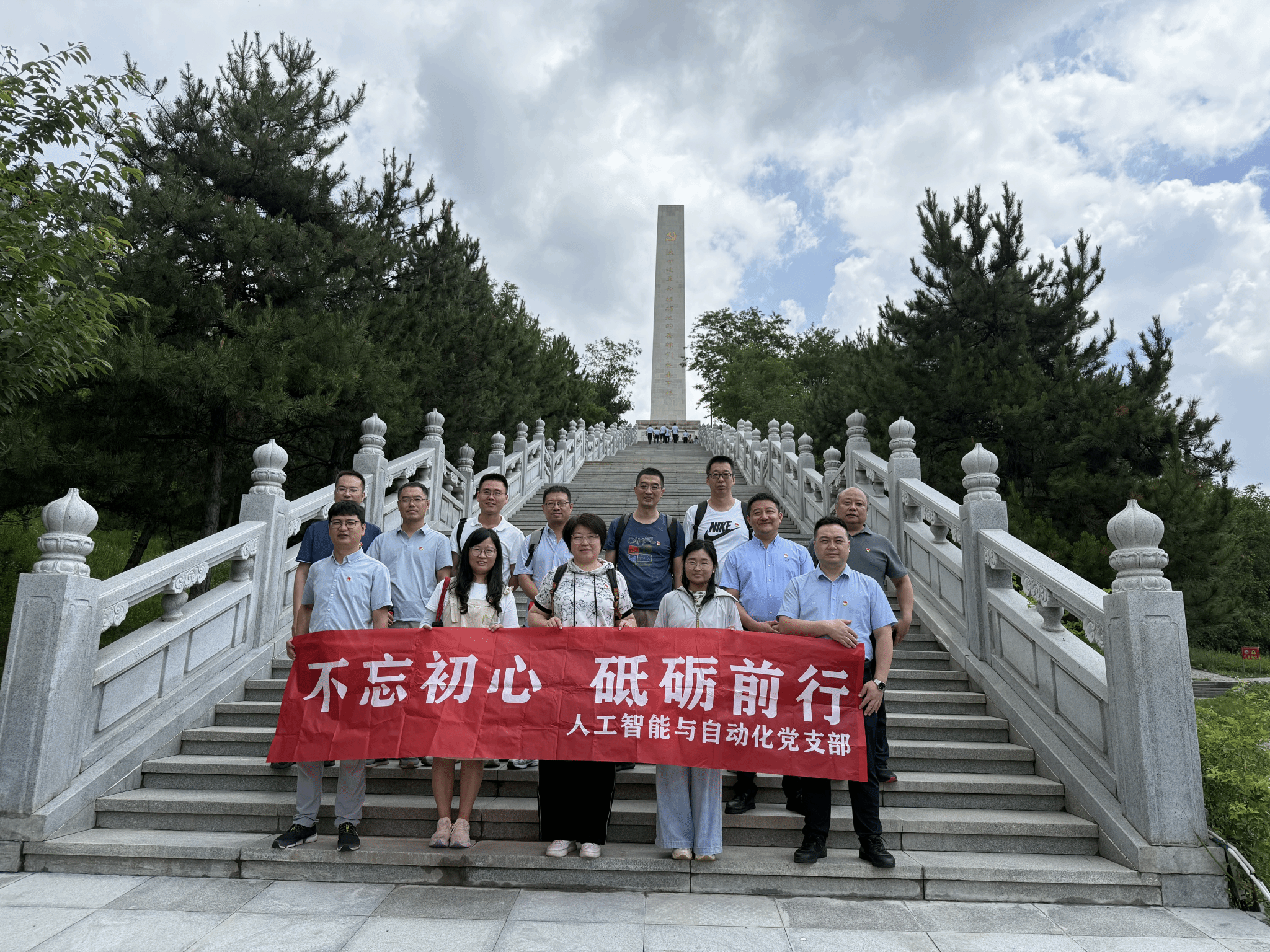参观结束后,人工智能与自动化系党支部书记何波,组织两个支部的教师党员齐聚陕甘边革命根据地英雄纪念碑下,共同回顾并深入学习了教育部长怀进鹏的重要讲话。何波介绍到,在酷爱成人网