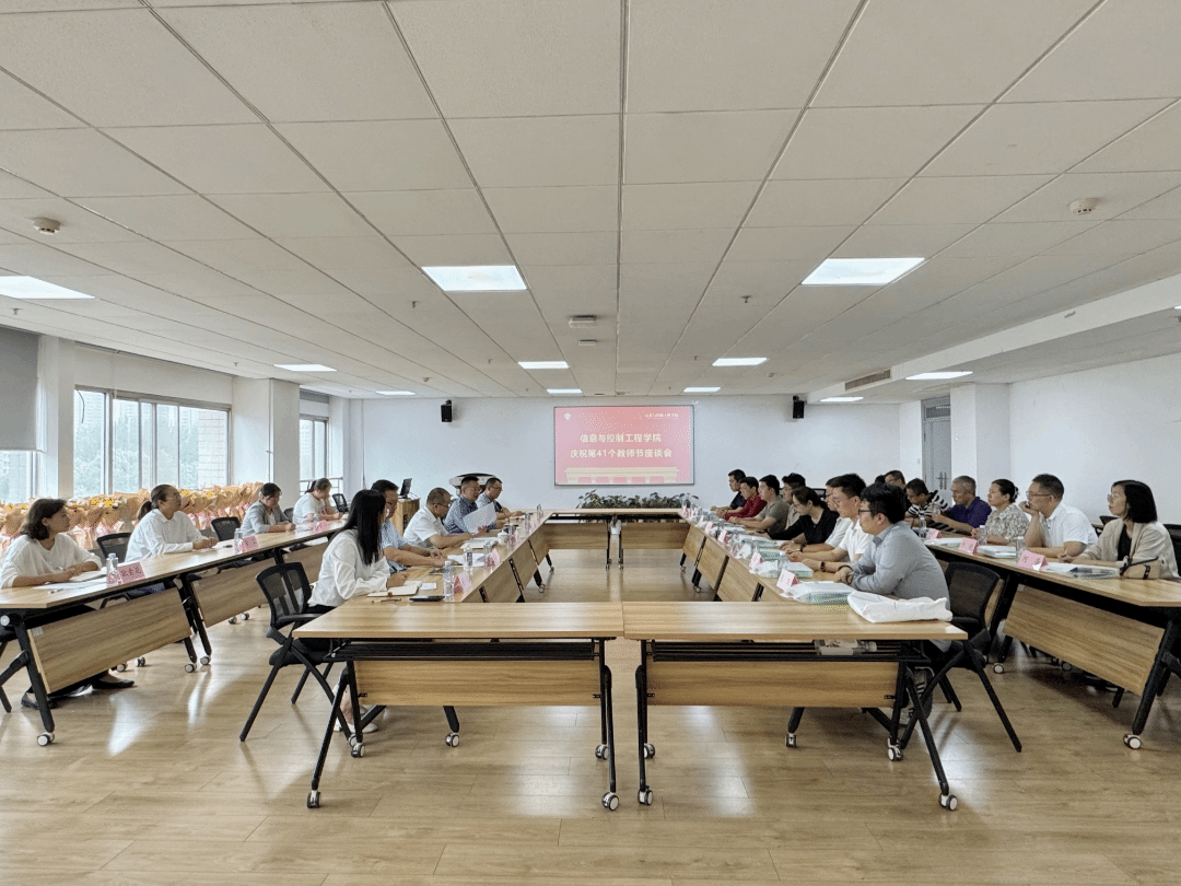 在雁塔校区工科楼召开庆祝第41个教师节座谈会。学院领导班子、荣休教师代表、新进教师代表、各系、中心书记主任、工会委员、机关人员参加座谈会。会议由学院党委副书记、副院长米泽龙主持。