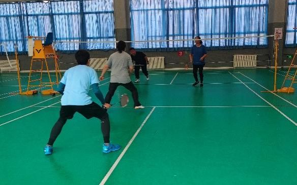 混双赛场,攻防博弈,各展所长。混双比赛的风格虽不如男双激烈,却多了几分默契与灵动。教师队的曾应员老师与耿素花老师搭档,配合十分默契,耿老师网前封网精准果断,曾老师后场控球稳健,总能巧妙化解学生队的进攻;研究生队的采用蔡庸彬同学与田谣同学则以“快、准、狠”为战术核心,女学生反应迅速,多次拦截教师队的网前小球,男学生后场扣杀力道十足,引得场下观众阵阵惊呼。赛后双方握手时,耿老师笑着对学生说:“你们的爆发力和配合都很出色,我们可是捏了把汗才赢下来!” 学生们也表示从教师队身上学到了很多控球技巧,收获满满。