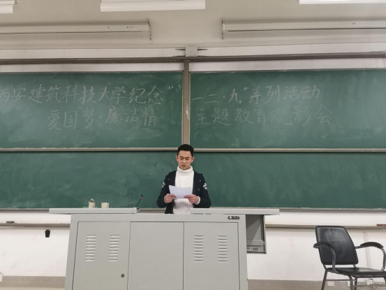 首先,由龙永富上台发言。他向同学们介绍了此次活动的目的与意义,并诠释了新时代爱国主义的主要内容。随后,大家一起观看了爱国主题的纪录片《黄大年》。影片讲述了地球物理学家黄大年用生命证明了他对祖国的初心与担当,用短暂的一生书写新时代知识分子的爱国情怀,把个人奋斗融入实现中华民族伟大复兴中国梦的感人故事。影片引起了同学们的强烈共鸣,心中深受感触。观影结束后,大家积极思考交流,分享自我感受,为本次观影做出总结。