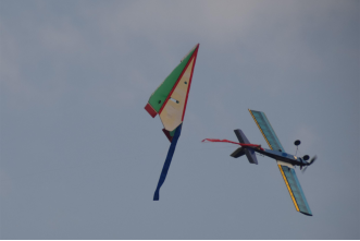 本次比赛一共有4个环节:开幕式、表演赛、2对2遥控空战、闭幕式。裁判员代表及参赛选手进行开幕式致辞之后,在表演赛阶段,各参赛选手向观众们展现了精湛的航模飞行技巧与操纵技术,并获得了大家的阵阵欢呼。紧接着,伴随着裁判员的口令,紧张而刺激的空中比拼正式拉开帷幕。赛场上的航模飞机你追我赶、十分激烈,不时有蓝色或红色的飘带从天空飘落,参赛队员们斗志昂扬,体现出他们不愿落后、勇争第一的拼搏精神。