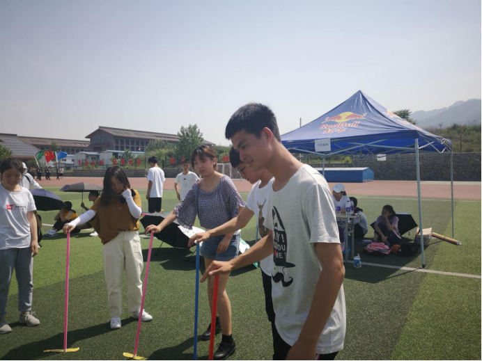 队员经过第一轮的热身比赛,团队协作更为默契,这两个项目都营造了轻松愉快的比赛氛围;最后是“摸石过河”项目,各位队员有条不紊用一块块“石头”拼成前进的道路。