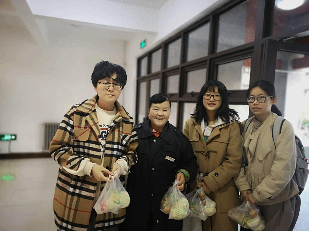 除了主题班会之外,同学们开展各种各样的实践活动,以自身实际行动来奉献爱心。在“落叶清扫”活动中,同学们树立爱校建家的意识,帮助清扫草坪上的落叶,美化了校园环境的同时,树立了自我服务的主人翁意识。在“爱心早餐”活动中,各位同学分组给楼管阿姨送去爱心早餐,以此来表达楼管阿姨一直以来的帮助及关心。同时,为了更好地将爱心送给需要帮助的人,各班级组织爱心捐赠活动,将自己闲置的书籍、衣物、生活用品等纷纷捐赠出去,赠人玫瑰手有余香。