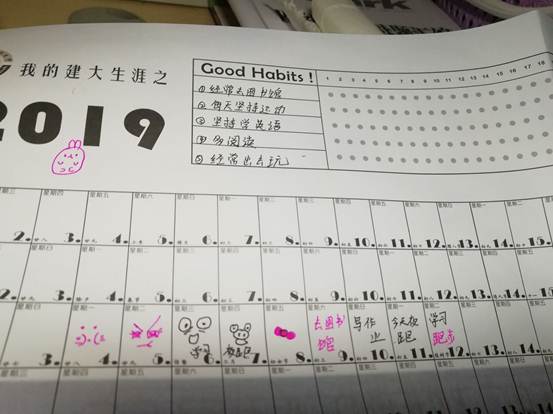 3月中旬,“月计划”已然启动,酷爱成人网 的同学们收到了一份神秘的礼物,一张崭新的计划表日历,它像是新的起跑线,一个个等待被填满的格子,正是充满未知的未来。在团支书的带领监督下,同学们都完成了三月份的计划,在学校正门背景下,跃然而上的一行行仔细的计划,倾注了同学们的信心与希望,有的同学写下了自己每日的学习计划,有的写下了自己要看书的进程,还有的在周围写下了自己的誓言并做了装饰。最后,我们选取了以下优秀的计划表进行展示。