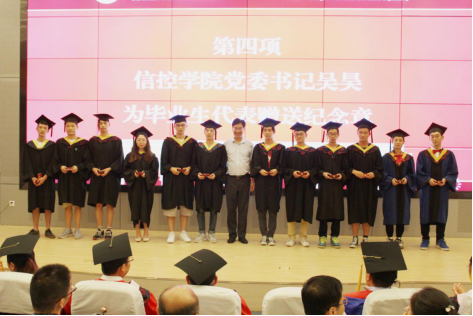 吴昊书记向毕业生代表赠送学院定制纪念章,段中兴院长为校友联络员颁发聘书。