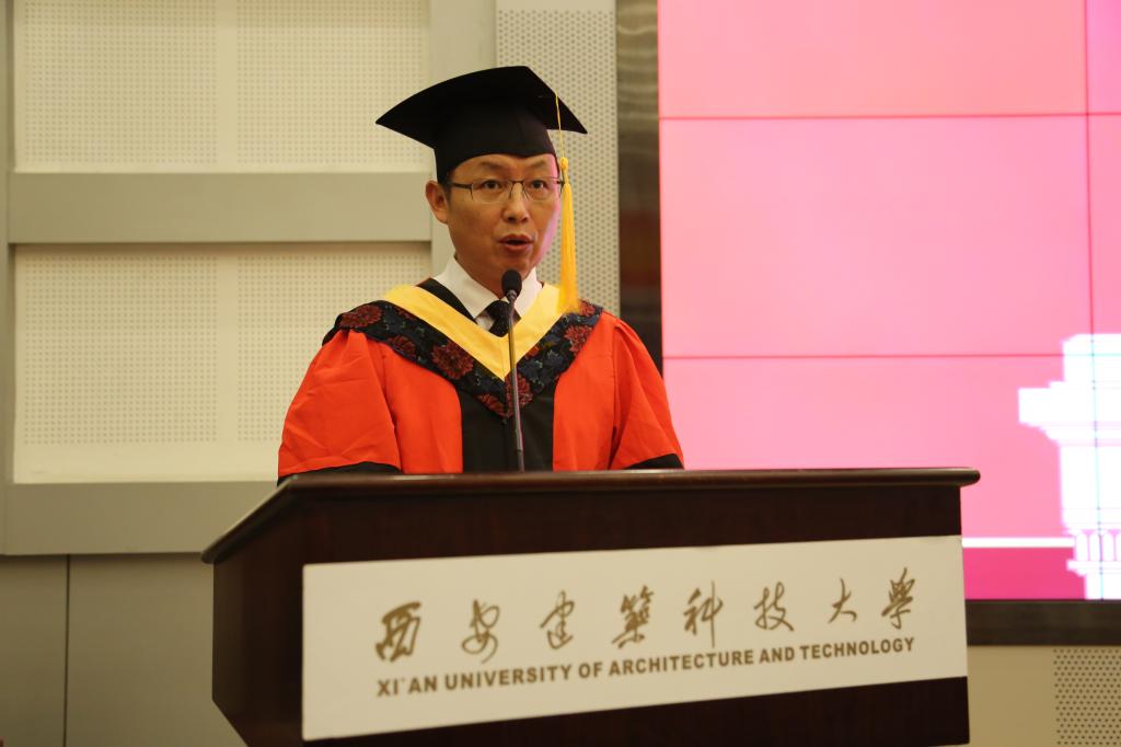 伴随着国歌,典礼正式开始。首先由院长段中兴教授致辞,他对顺利完成学业的毕业生表示祝贺,对他们大学四年的努力表示肯定。段中兴教授对即将离校的毕业生提出四点期望:一是要明确奋斗方向,积极地去规划和设计自己的人生,把个人的发展与社会的要求和期望结合起来,追求卓越,实现价值;二是要担当社会责任,在未来的人生道路和社会生活中,以责任为重,以诚信为本,踏实做事,认真做人;三是要勇于创新创业,立足实际,面向社会,把所学的知识与国家和社会需要紧密结合起来,艰苦奋斗,努力拼搏;四是要牢记奋斗是青春的主题曲,以广阔的视野和强烈的社会责任感,在青春年华的奉献与奋斗的过程中实现自身的价值。