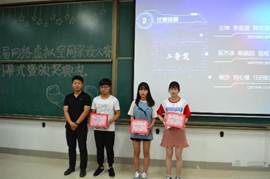 大会在激昂的国歌中拉开帷幕,首先由科技部部长易成宣布本次比赛的优秀裁判员奖和参赛队员获奖名单,其中,获得优秀奖的团队19个,三等奖6个,二等奖3个,一等奖1个。随后,由杨晓寒为优秀裁判颁奖,由廖怡岚、朱海琦、张雨明分别为荣获一等奖、二等奖、三等奖的选手颁奖,同学们用热烈的掌声为获奖团队表示热烈的祝贺。