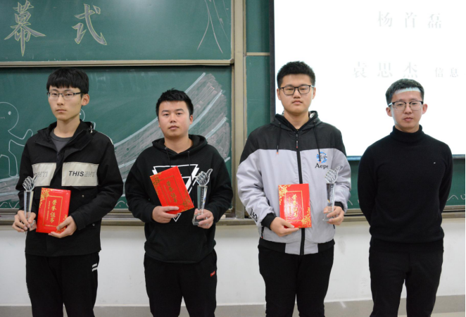 首先,大会由本次活动总裁判长李金波宣布本次活动的获奖名单,并对本次获奖的同学表示祝贺,接下来由张雨明和杨晓寒分别为本次活动荣获一等奖、二等奖及三等奖的同学颁发获奖证书及奖品。
