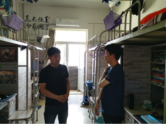 各年级于19周组织开展宿舍安全卫生大检查,对宿舍安全隐患进行排查。2016级辅导员王栋、2017级辅导员张雨明和2018级辅导员杨晓寒分别带队对本年级全部宿舍进行全面检查。