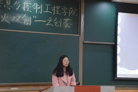 软件1501班的拜晓蒙则具体地向同学们介绍了申请专利的相关内容。她希望同学们能够勇敢地迈出第一步,在大一、大二期间能够多参加一些竞赛,不断积累经验,不断提升自己的能力。