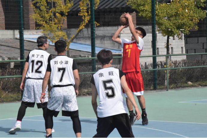 研究生篮球队和机电学院研究生篮球队及组织方裁判员共同参与比赛。