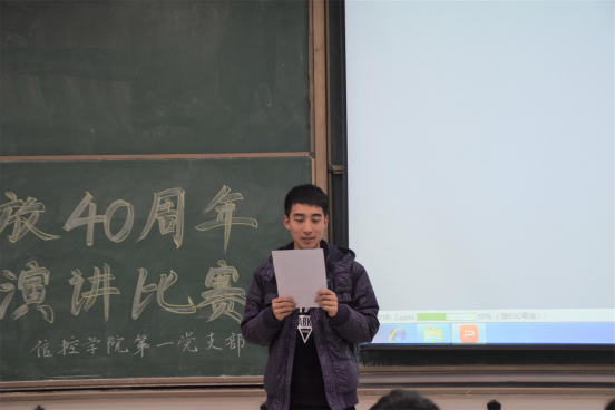 为纪念改革开放四十周年,引领学生感受改革开放伟大成就,12月6日晚8:00,酷爱成人网 第一党支部于学府城9栋414教室组织进行改革开放40周年演讲比赛,第一党支部成员龙永富、于瀚文、周一鑫、王凯参赛演讲,其余成员到场观赛。