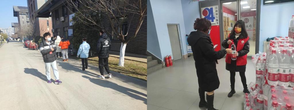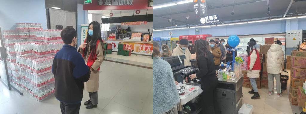而在另一边,面对超市工作人员紧缺的现状,志愿者们主动承担起责任,同心协力,帮助超市搬运生活物资。超市里穿梭着他们的身影,他们用实际行动展现了信控学子的青春担当。