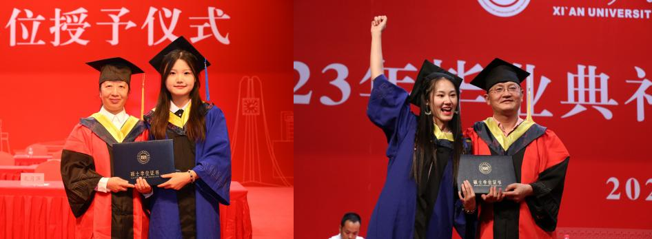 毕业典礼在全体毕业生的合唱《送别》中落幕。学位授予仪式随即举行,学院学位委员会主席马宗方教授、学院学位委员会委员于军琪教授、王慧琴教授、边根庆教授为毕业生拨穗授位,合影留念。