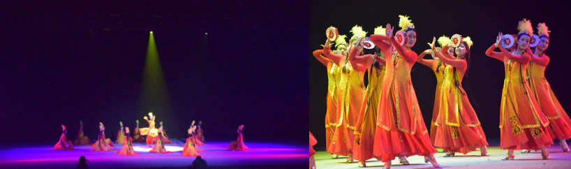 飘逸的红色裙摆,如隐如现的手鼓,她们正如石榴花般绽放,诠释着中华民族像石榴籽一样紧紧抱在一起。