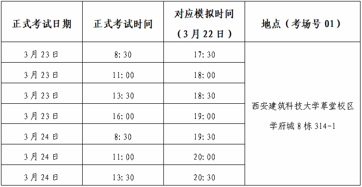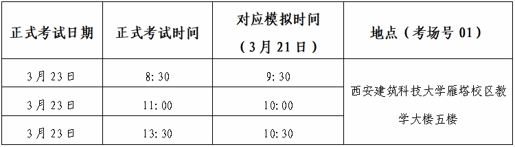 雁塔校区模拟考试具体安排