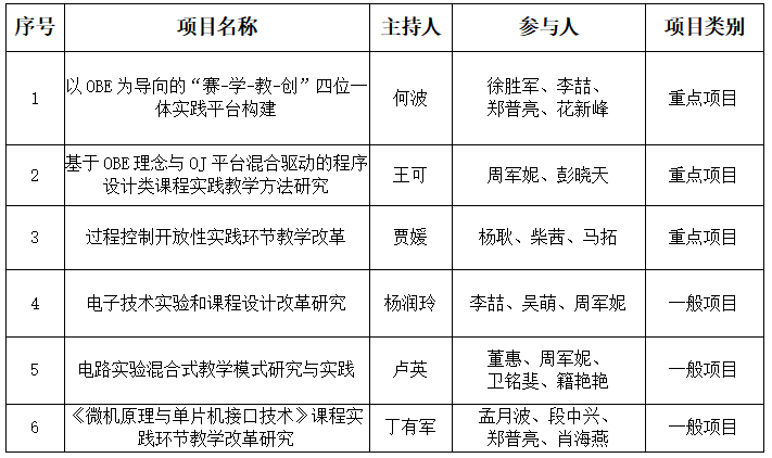 根据《关于开展2024年实践环节教学改革研究立项工作的通知》,经学院组织评选,最终确定项目6项,现将名单予以公布。