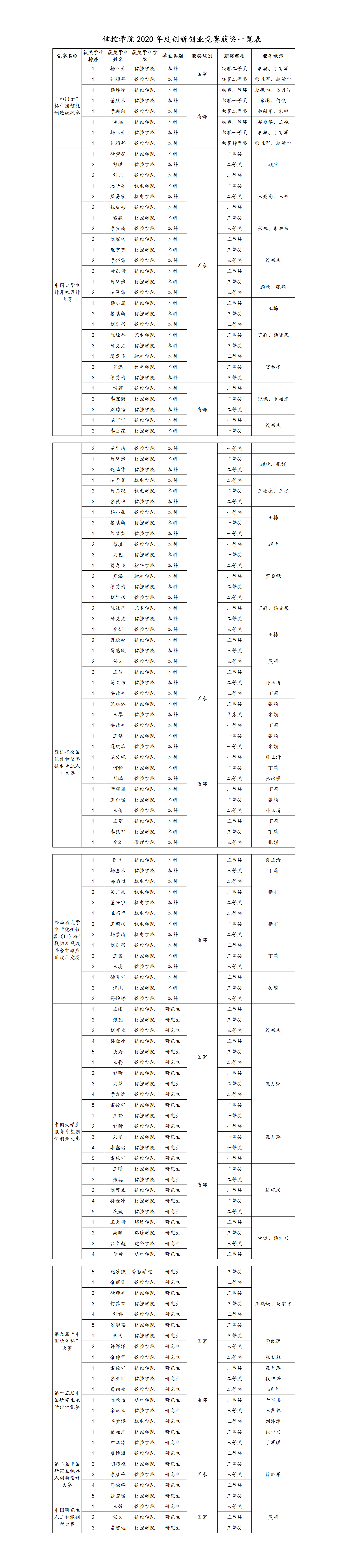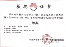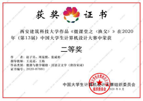 2020年8月,在由教育部高等学校计算机类专业教学指导委员会、教育部高等学校软件工程专业教学指导委员会、教育部高等学校大学计算机课程教学指导委员会、教育部高等学校文科计算机基础教学指导分委员会、中国教育电视台联合主办的中国大学生计算机设计大赛中,获的国家级二等奖2项、国家级三等奖6项,省部级一等奖3项、二等奖10项、三等奖11项。