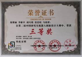 2020年9月,在中国科协青少年科技中心主办的中国研究生机器人创新设计大赛中,获全国三等奖1项。