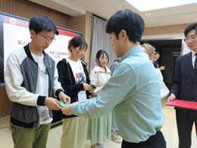 入团介绍人代表宋于瑞带领新团员学习《团章》中有关团员义务和权利,加强团员意识。新团员代表郭明宇发言,他表示今后会更加努力,严于律己,以一名团员的标准严格要求自己,他号召全体新团员,积极帮助他人,自觉做好服务,起到带头模范作用,彰显新时代团员的风采。老团员代表王隋德以《亮团员身份,做合格团员》为题发言,结合自身7年前的入团经历和日常志愿工作,分享作为一名团员的荣誉与自豪,也希望各位新团员在生活学习中以身作则,敢亮身份,勇做表率。同时也期望新时代的团员要谨记当今祖国繁荣的来之不易,要向先辈们学习,追随他们的脚步,建设更加强大的祖国。