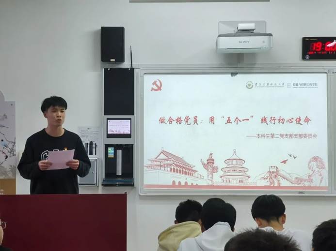 本科生第二党支部于学府城9-414召开主题“做合格党员,用’五个一’践行初心使命”支部大会,会议由赵子博同志主持,参与本次会议的有第二党支部书记孙正清同志,第二党支部全体党员和入党积极分子。