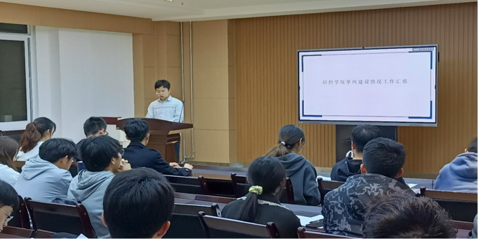2019级学风建设推进会在信控大楼504会议室举行。2019级辅导员孙正清,2019级各班学委、班长,本科生第二党支部成员参加此次会议。