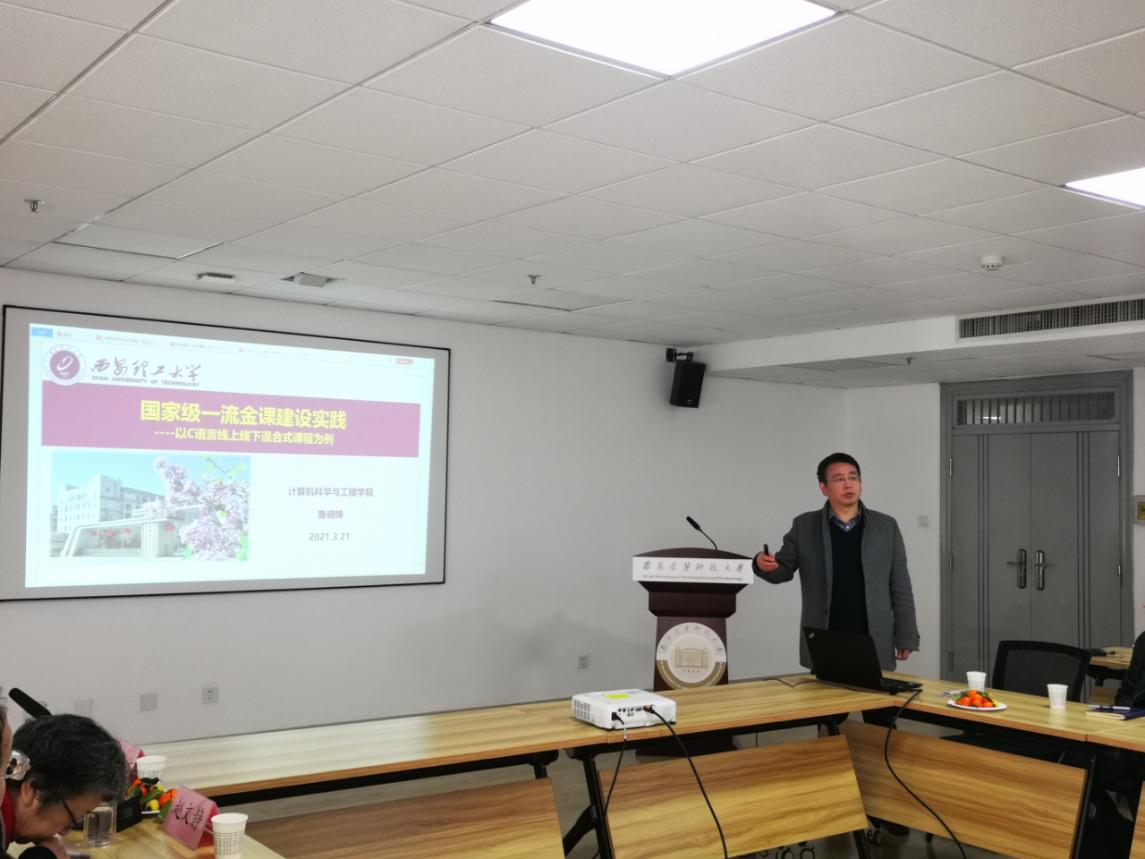在工科楼713召开计算机科学与技术国家一流本科专业建设推进与研讨会。校党委副书记张志昌、教务处处长肖国庆、校教学督导组赵文静、王民、学院领导班子成员以及计算机系全体教师参会。会议特邀教育部计算机类教学指导委员会委员、西安交通大学计算机学院院长张兴军教授,教育部工程教育专业认证专家委员会委员、西安理工大学计算机学院副院长鲁晓峰教授参加并作报告。会议由酷爱成人网