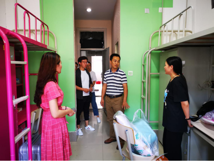 慰问小组一行人先后走访了新生入住的南山9#女生宿舍和南山11#男生宿舍。每到一个宿舍,两位老师都和大家亲切交谈,了解他们是否适应新环境。张博书记表示,学院会尽心尽力为同学们在草堂的学习生活提供良好的环境。同时,张博书记也对大家提出了三点期望:一是希望大家多和同学们沟通交流,尽快适应新环境,如果在学习、生活当中遇到问题及时向老师们寻求帮助;二是希望2019级的新同学能尽快适应研究生生活,更好地完成角色转变;三是希望同学们能好好利用研究生的时光,潜心问道,虚心求教,不辜负光阴。