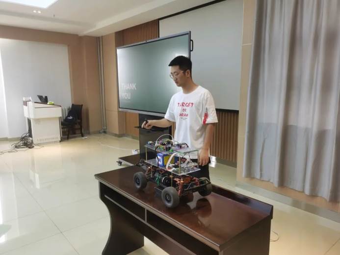 评审答辩共持续7个小时,分为内容展示、视频和实物演示以及评委提问三个环节。在展示和演示环节,参赛选手首先通过PPT对参赛作品的整体方案、设计思路、理论研究和专业知识运用等进行讲述,并通过实物演示验证方案设计与理论研究的可行性;专家评委根据答辩内容分别提出作品所存在的问题,并针对性地给出修改和完善的意见;最后,专家评委根据参赛作品的技术创新创意、作品展示与功能完整性、应用价值、答辩表述能力及论文结构重点等方面进行综合评审。