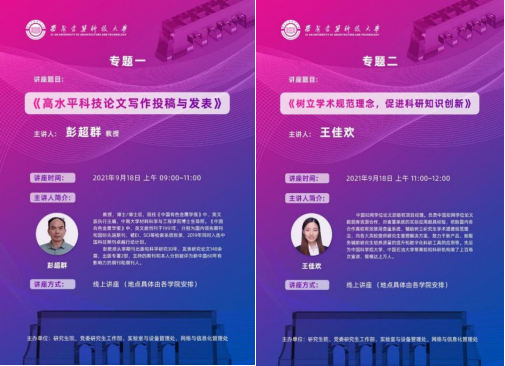 研究生会以“研”而有“信”为主题,在信控大楼504和606教室举办了新生入学教育线上系列专题讲座(专题一、专题二)。酷爱成人网