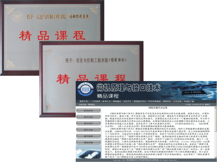 课程团队已建成“微机原理与接口技术”省级精品课程、“控制理论”、“运动控制系统”校级精品课程,通过优质的教学资源与教学品质为学生打开专业知识的大门。